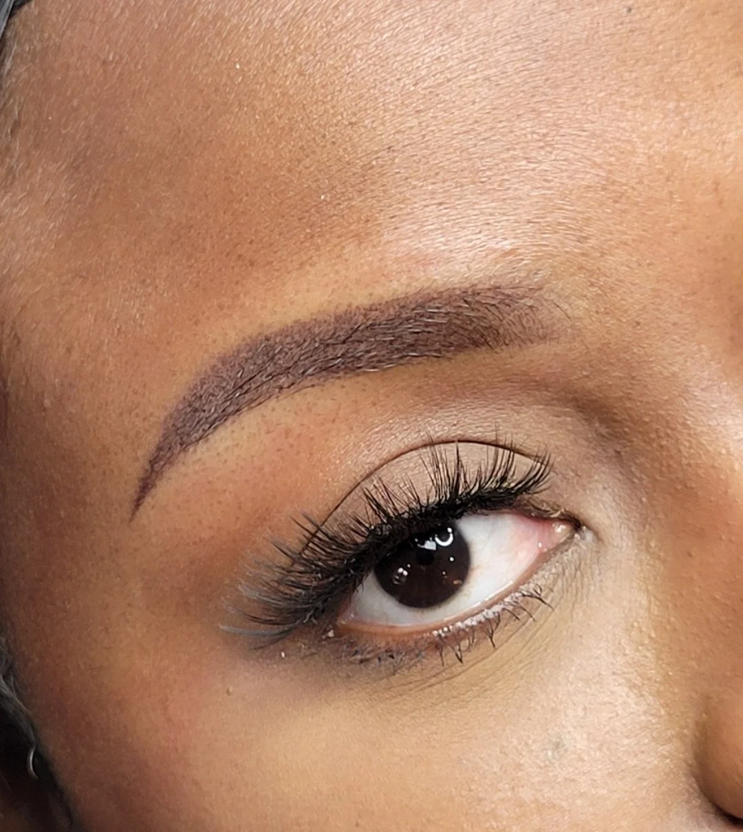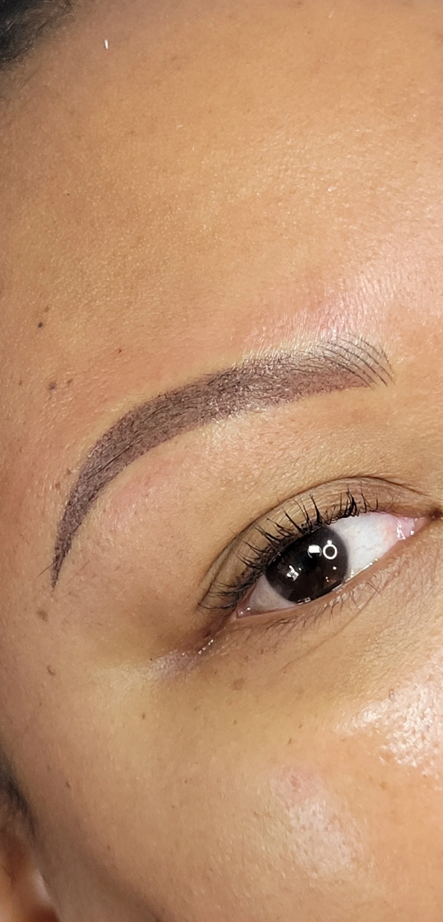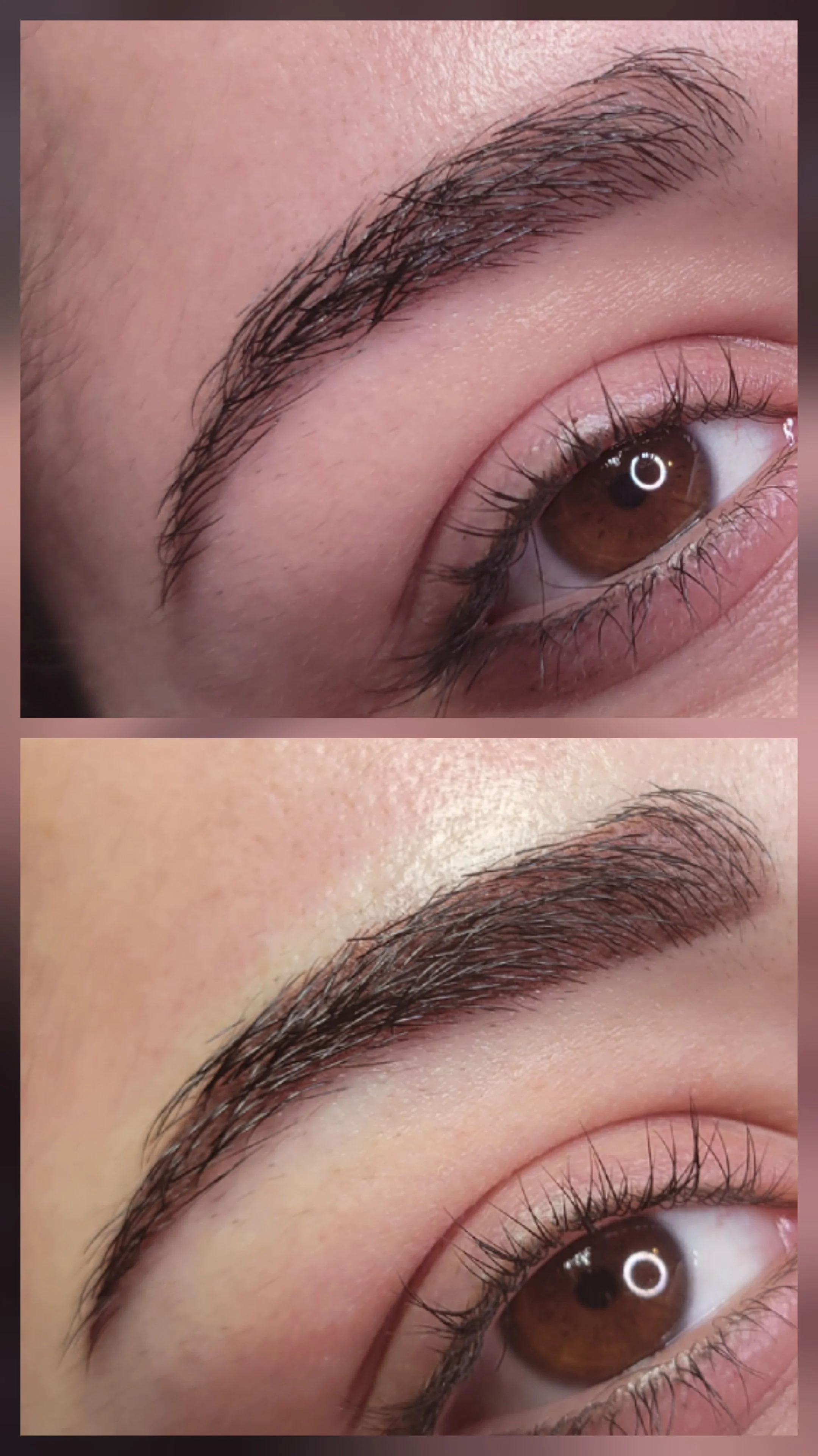 Creates a soft, shaded eyebrow look, similar to filling in brows with powder or pencil. A machine is used to deposit tiny dots of pigment into the skin, creating a gradient effect. Lighter in the front and gradually darkening toward the tail, creating a full, defined look.